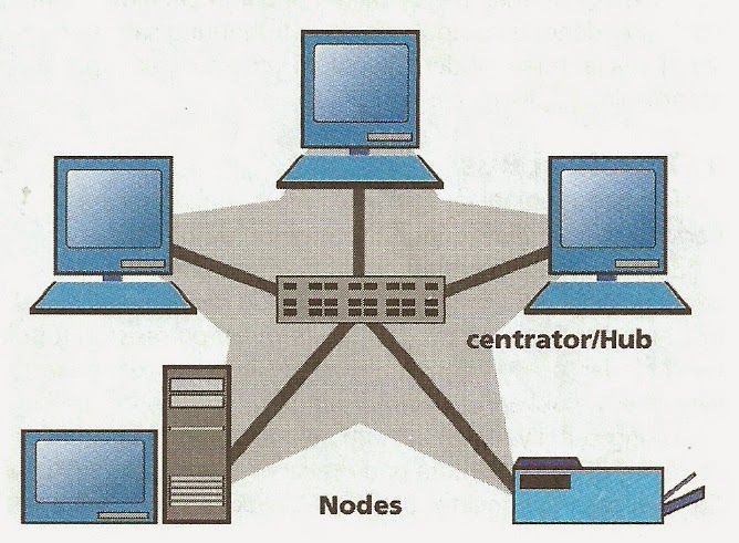 Topologi ini membentuk seperti bintang karena semua komputer di hubungkan ke sebuah hub atau switch dengan kabel UTP, sehingga hub/switch lah pusat dari jaringan dan bertugas untuk mengontrol lalu lintas data, jadi jika komputer 1 ingin mengirim data ke komputer 4, data akan dikirim ke switch dan langsung di kirimkan ke komputer tujuan tanpa melewati komputer lain. Topologi jaringan komputer inilah yang paling banyak digunakan sekarang karena kelebihannya lebih banyak.